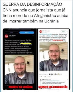 Você vai ver tudo que não está acontecendo sendo vendido como uma tragédia. É a mesma mídia que não informou absolutamente nada sobre os ataques de Donbass e Lugansk. E que não fala nada sobre a Líbia, muito menos sobre o Afeganistão deixado à própria sorte na mão da Al Qaeda, armada até os dentes pelos EUA de Biden. A mesma mídia que não fala nada sobre os recentes ataques à Somália.