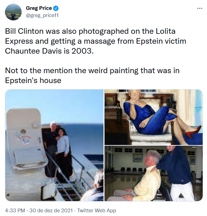 Durante o julgamento de Ghislaine Maxwell, que foi considerada culpada em 29 de dezembro de recrutar e traficar jovens para a quadrilha de tráfico sexual do pedófilo Jeffrey Epstein, o ex-presidente dos EUA Bill Clinton foi citado como presença regular no jato particular do magnata, apelidado de “Lolita Express”.